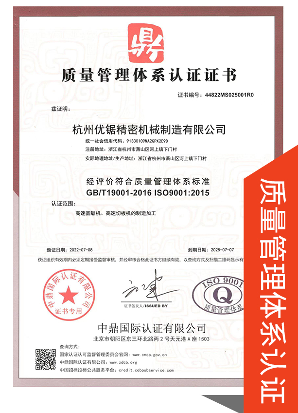 杭州優鋸精密機械制造有限公司位于浙江省杭州市蕭山區河上鎮下門村360號,距離蕭山國際機場 30公里蕭山湘湖地鐵站15公里,臨浦高速收費站3公里,交通便利、環境優美。一家專業生產高速金屬圓鋸機、厚鋼板圓鋸機、銅鋁高速圓鋸機、管材切割流水線及各類鋸切專機定制的高新企業;同時也是一家集研發、設計、制造及銷售和進出口為一體的專業技術團隊。
